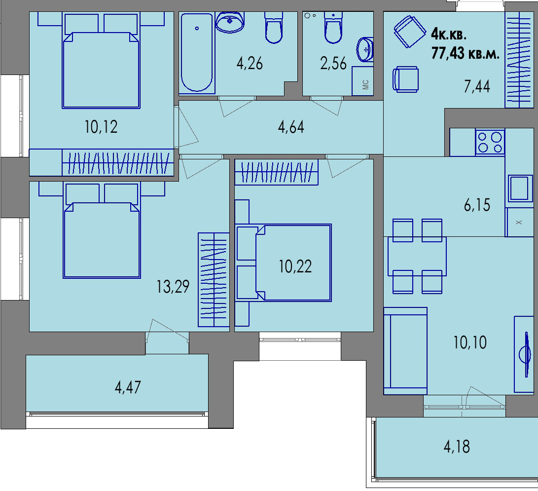 Квартира с предчистовой отделкой "white box", что позволит жильцам реализовать свои самые смелые фантазии в отделке.